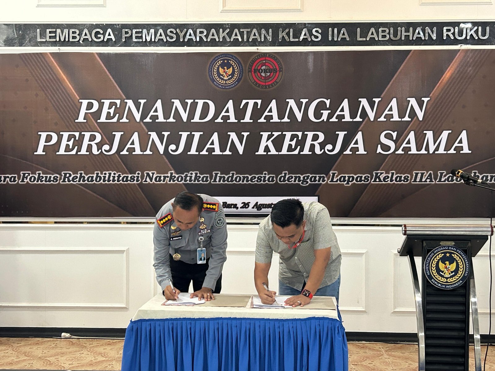 Batubara – Lembaga Pemasyarakatan (Lapas) Kelas IIA Labuhan Ruku terus menunjukkan komitmennya dalam memutus mata rantai penyalahgunaan narkotika. Selasa (26/8), Lapas Labuhan Ruku menjalin kerja sama strategis dengan Fokus Rehabilitasi Narkotika Indonesia untuk memperkuat program pembinaan dan pemulihan warga binaan pengguna narkotika.