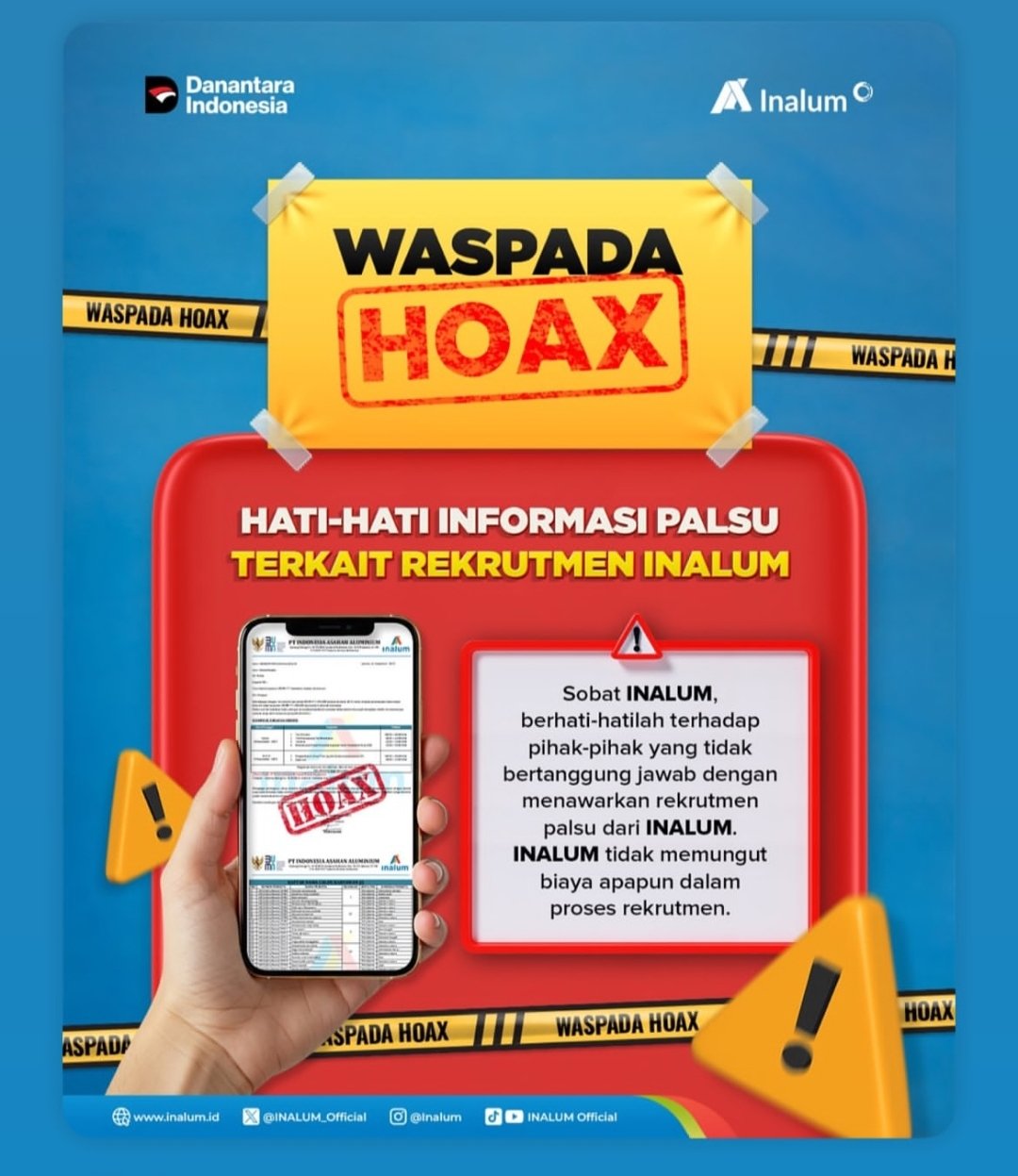 INALUM menegaskan bahwa praktik tersebut adalah murni penipuan dan tidak ada kaitannya dengan perusahaan. Oleh karena itu, masyarakat diminta untuk tidak mudah percaya terhadap tawaran kerja yang mencurigakan, terutama apabila terdapat syarat pembayaran.